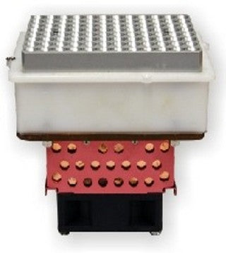 Heater-cooler top compatible with 384 well PCR plates. Temperature range from 4-95C. Used in PCR plate preparation applications in 384 well format.