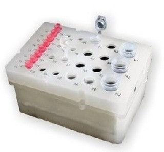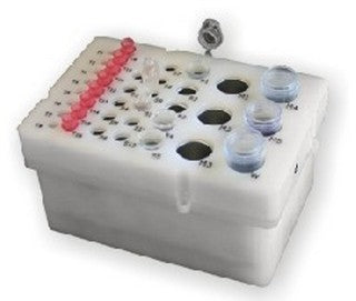 The reagent block keeps the reagents at a controlled temperature ranging from 1˚C up 80˚C. It can hold 30mL to 50mL volume. It can be integrated with all VERSA liquid handling workstations.
