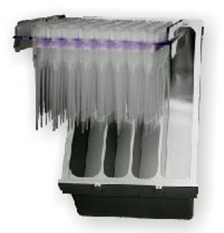 Metal box to hold tips (20µL, 50µL and 200 µL). Reinforced to support eight-channel head. Tip box available for 1000 µL tips also. Compatible with all VERSA liquid handling systems.