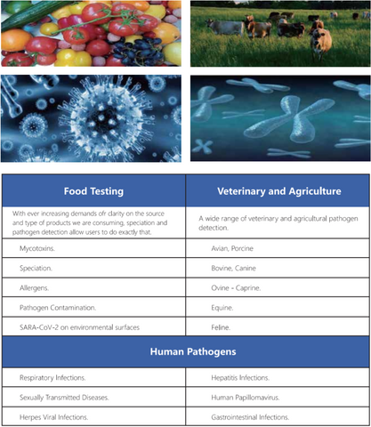 The instrument can be configured to 2-channels,4-channels, and 5-channels for broad applications in bio-research, rapid diagnostic of human pathogens, food safety tests, veterinary& agriculture pathogens, etc detections.