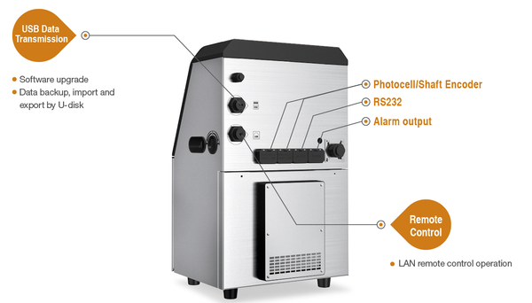 Interface | Photocell, Shaft Encoder, External Alarm, USB, Ethernet, RS-232 communication |